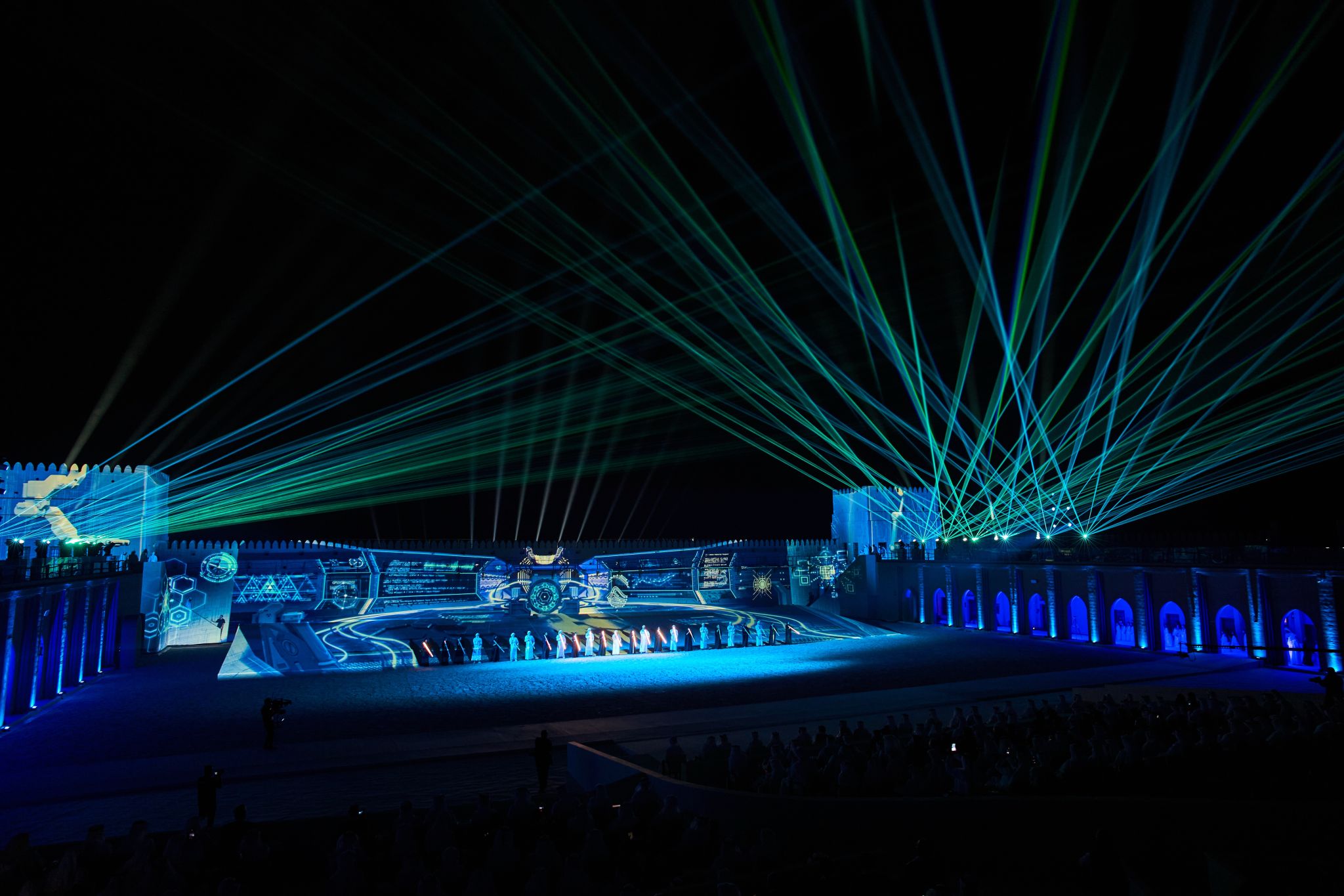 Our laser system projected large-scale dynamic visuals that reflected the character and culture of the UAE and the Al Dhafra region, integrating seamlessly with the wider production to create a distinguished, memorable experience.